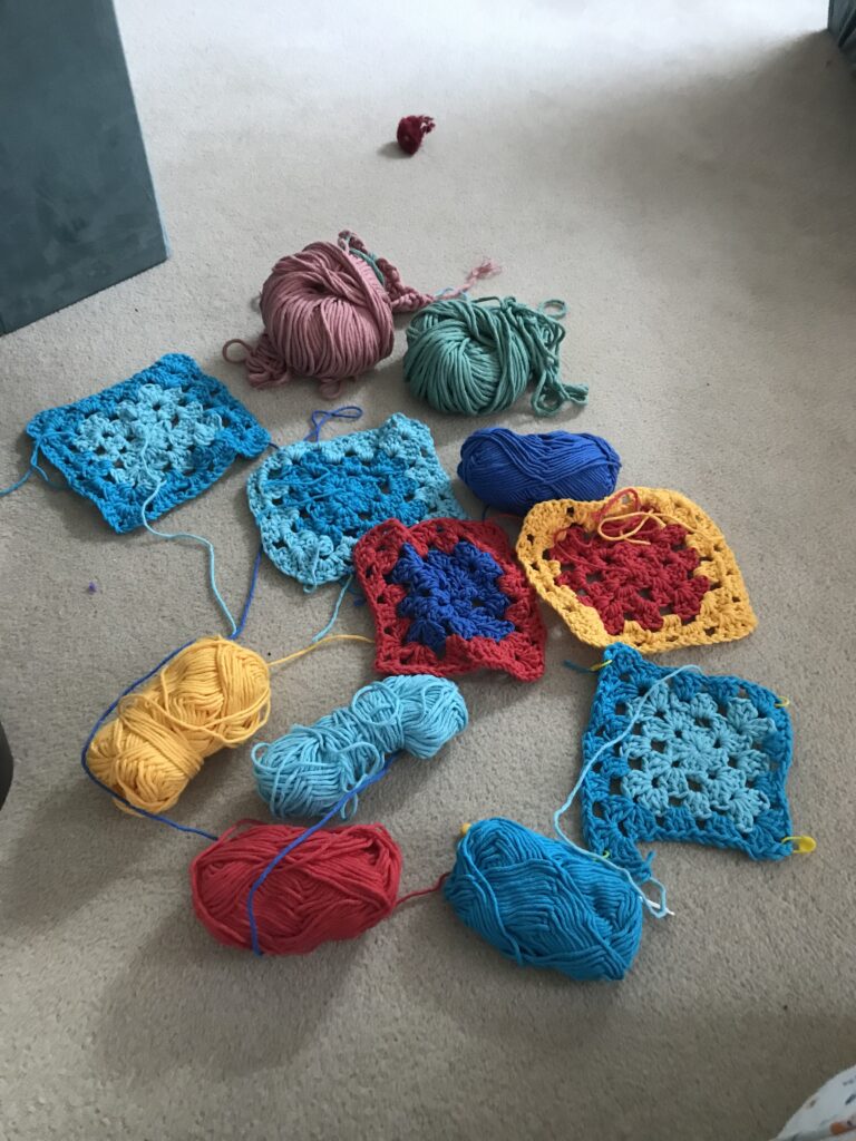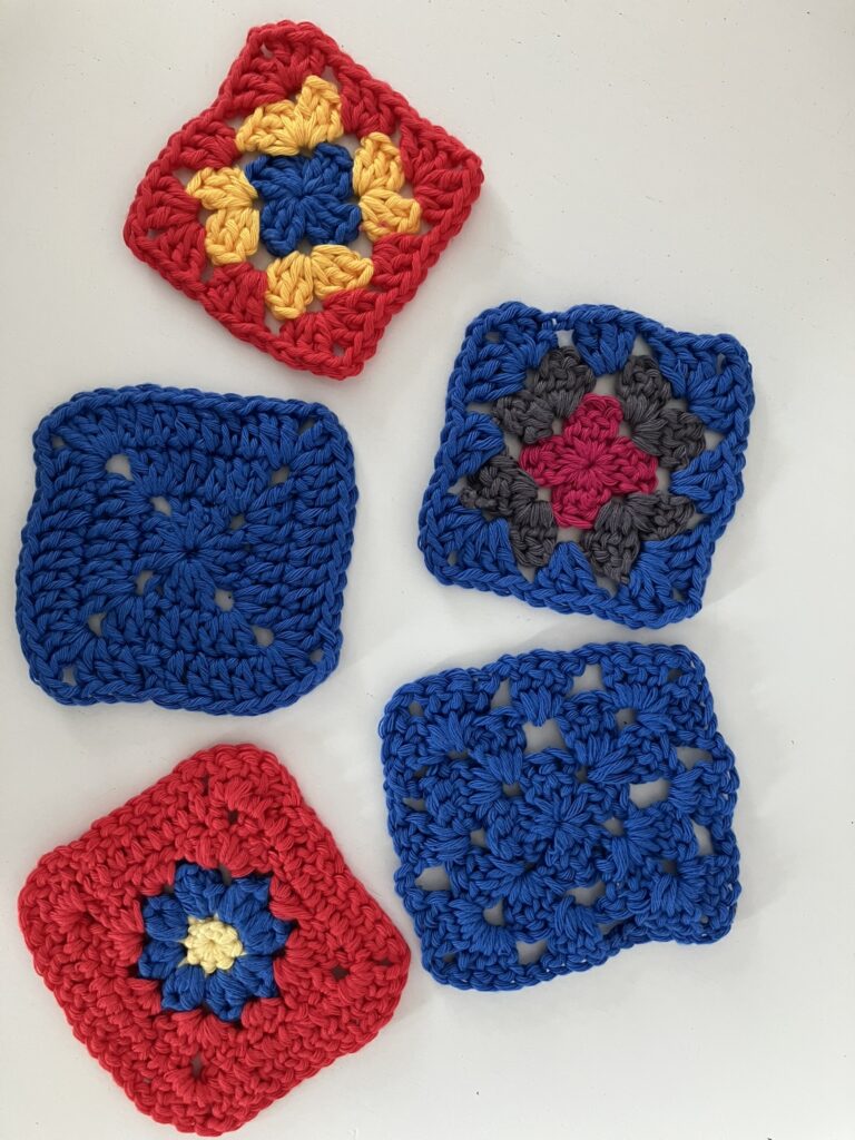 Skills learned: Magic ring, treble crochet, slip stitches, joining in new colours, joining with seams
